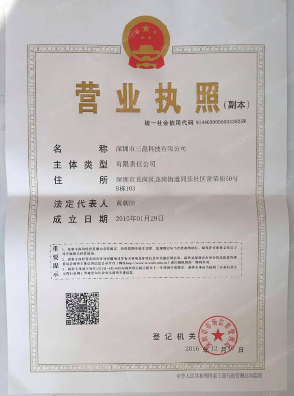 三昆科技營業執照