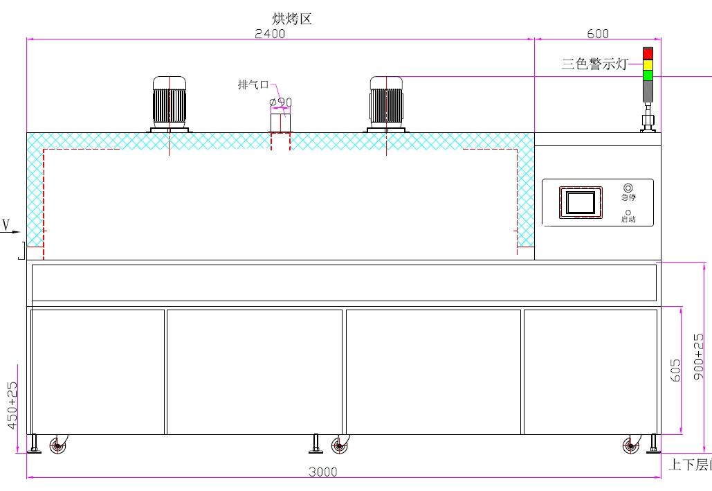 | 1、采用不銹鋼U形發熱管(功率1000W、220VAC) | 2、發熱管安裝在工件上方 |