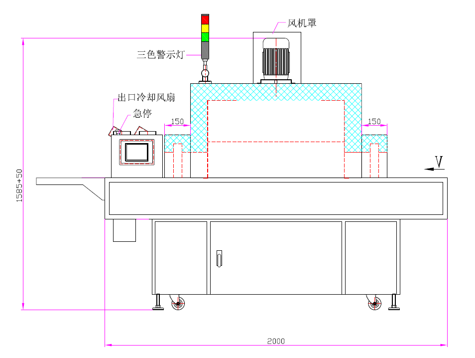 | 5、輸送帶寬度:600mm | 6、上箱體設計:可電動打開,便于維修 |