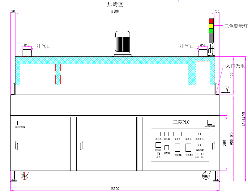 | 5. 入口高度:1000mm | 6. 超溫停止加熱并報警 |