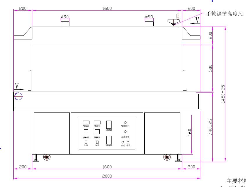 | 4、輸送速度:0~2m/min | 5、 超溫停止加熱并報警 |