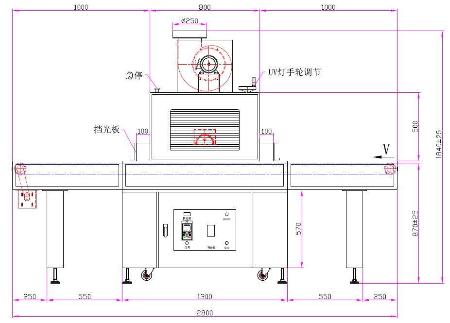 | 1、UV燈功率:16.0kw*1支 | 2、UV燈總長:1540mm、弧長:1440mm |