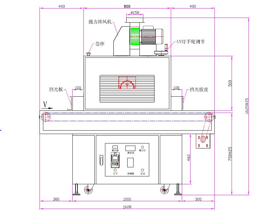 | 9、輸送寬度:400mm | 10、輸送速度:0~5m/min(速度表直接讀數(shù)) |