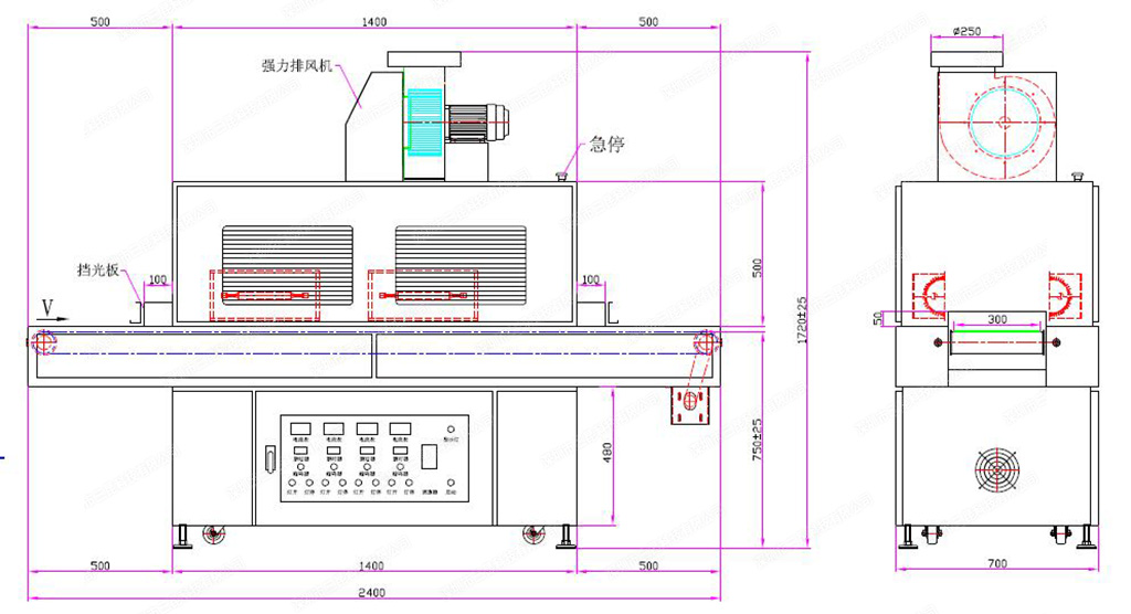 | 1、UV燈功率:3.0kw*4支 | 2、UV燈總長:400mm、弧長:300mm |