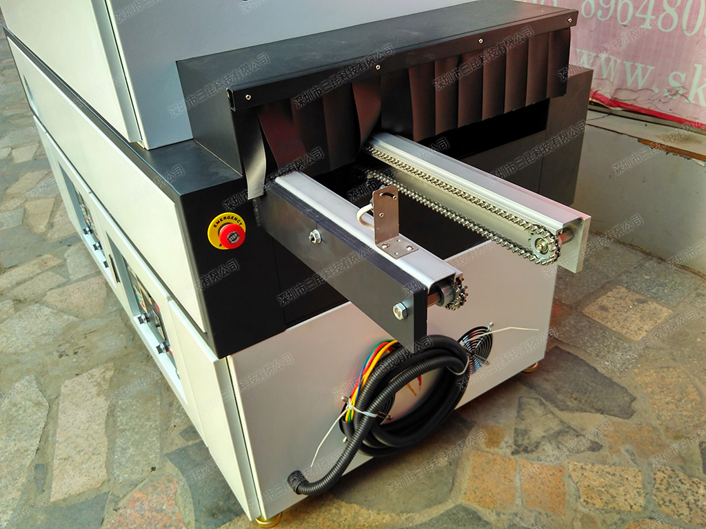 | 7、采用上、下排風(fēng)系統(tǒng) | 8、輸送材料:不銹鋼長(zhǎng)銷軸鏈條(銷長(zhǎng):5mm) |