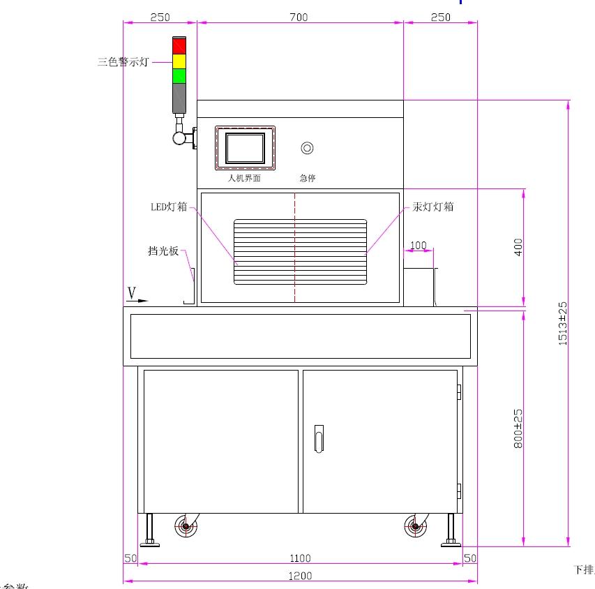 | 1、LED光源:LED燈1組、UV汞燈4kw1組 2、UV汞燈總長(zhǎng):370mm、弧長(zhǎng):270mm | 3、UV波段主波峰:LED/385+395nm、汞燈365nm |