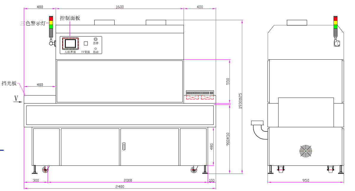 | 3、UV燈功率:3.0kw*2支、6kw*2支(UV汞燈) | 4、UV燈總長:3.0kw:400mm、6kw:620mm |
