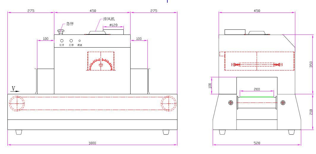 | 1、UV燈功率:2.4kw*l支(國產(chǎn)) | 2、UV燈管總長:300mm、弧長:200mm |