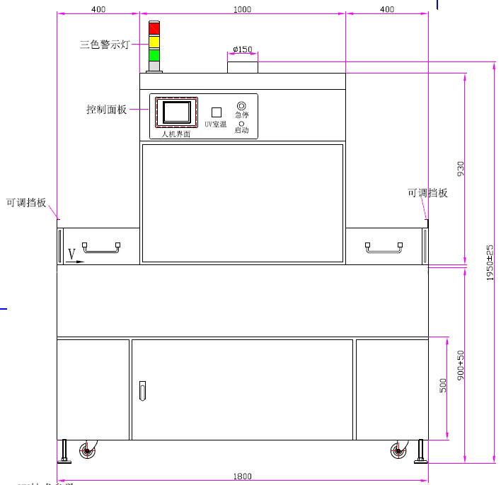 | 1、UV燈功率:3.0kw*2支(汞燈) | 2、UV燈總長:620mm、弧長:500mm |